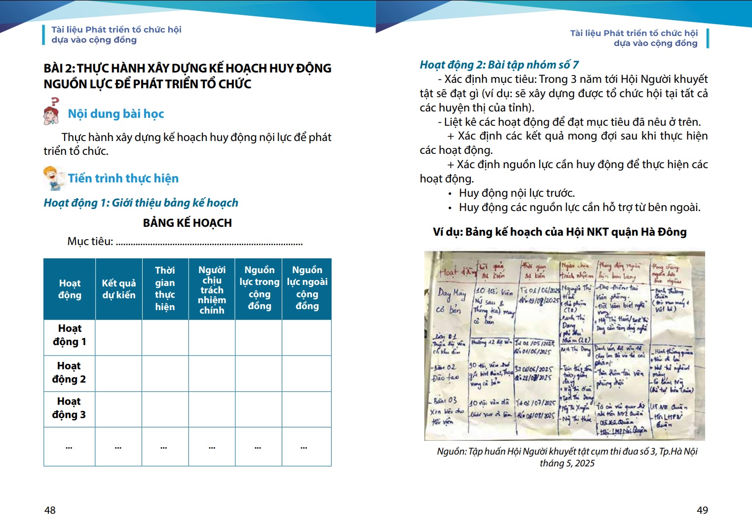 3. Thực hành xây dựng kế hoạch huy động nguồn lực để